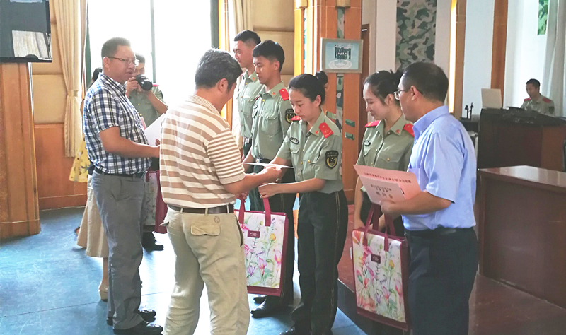 上海各地在沪企业(商会)联合会副秘书长郭兆强主持慰问和协议签订仪式。武警上海文工团团长董德平讲话,他说在建军节喜庆日子里,在沪企业联合会一行冒着酷暑来团慰问,表达了商会企业家们浓浓的拥军情怀。他代表全体团员深表感谢。联合会会长兼党委书记胡雅龙致词指出,军民团结是我党我军的光荣传统,是克敌致胜法宝,我们一定要发扬光大,今天来慰问只是聊表心意,希望各异地商会和武警文工团加强合作,共建共赢,谱写军民融合新篇章。