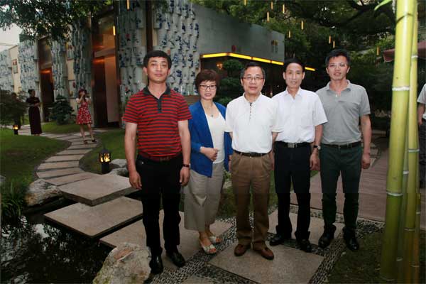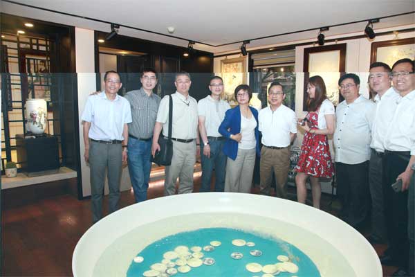 2014年7月3日下午, 部分企业家与民盟上海市委青年企业家首次联谊活动在定西路566号瓷园举行。 常务副会长江妙敏、张腊根与20余位企业家联谊座谈。 党支部书记李永清,民盟中央副主席、上海市委主委、市人大常委会副主任郑惠强应邀出席活动。期间,江西商会常务副会长江妙敏、张腊根陪同民盟企业家参观了瓷园,对瓷园别具一格、闹中取静的雅致环境赞不绝口。企业家们还兴致勃勃参观了景德镇瓷画馆。瓷画馆犹如镶嵌在瓷园内一块瑰宝,作为陶瓷收藏家,张腊根展示了个人所收藏的不少名家珍品,令参观者大饱眼福、感叹不己,留下了美好而深刻的印象。