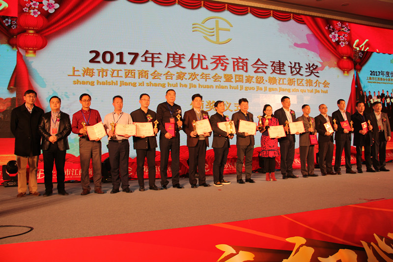 上海市吉安商会、九江市上海商会、上海市新余商会、 女企分会、 窗业分会、 园林分会、南昌县(上海)商会、南昌市新建区(上海)商会、长三角石城商会、上海广丰商会、修水县上海商会、上饶县沪商企业联合会、进贤(上海)商会、资溪县上海商会、横峰县上海商会、南丰县上海商会荣获2017年度优秀商会建设奖。