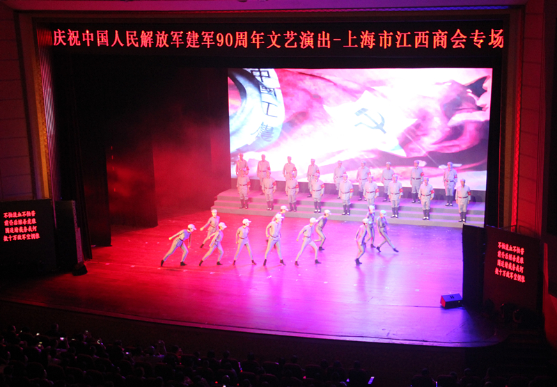 7月的上海,150年一遇的高温,能够与酷暑媲美的是来上海云峰剧院参加纪念中国人民解放军建军90周年文艺演出(江西商会专场)的江西籍企业家、各界在沪赣籍乡友及知名人士。云峰剧场1500个座位坐无虚席。一些得知消息但没有票的乡友在秘书组的安排下坐在台阶上看演出,拥军之情爱军之心让人感动。