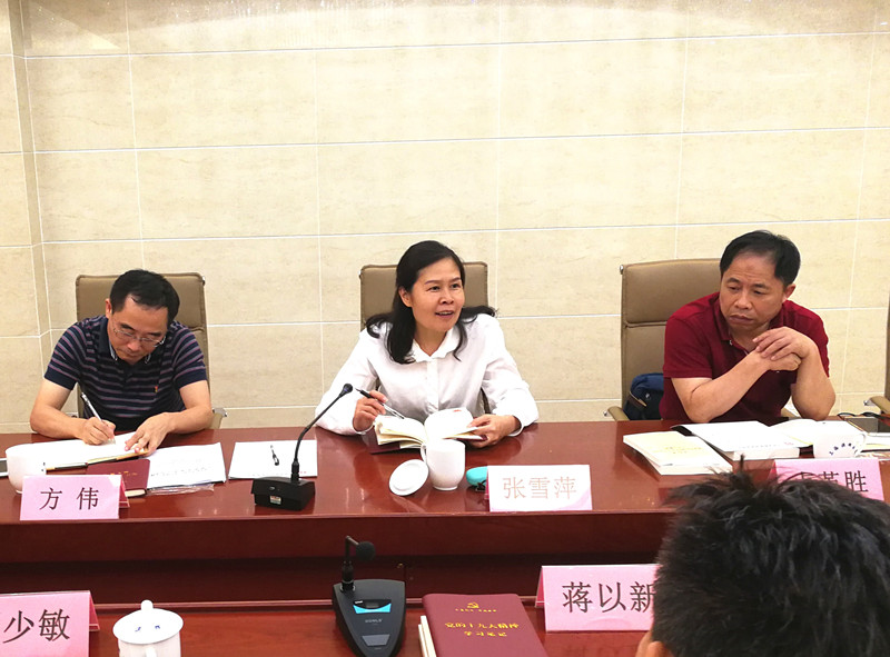 江西省政府驻沪办党组成员、副主任、江西驻沪单位党委书记张雪萍最后讲话,她说今天的民生生活会开得很好,大家把自己摆进去了,对照党章党规真找差距,非常认真务实。对商会党支部今后工作她提出三点要求:一要继续深入开展好主题教育活动,读好《习近平新时代中国特色社会主义思想学习纲要》、《习近平关于“不忘初心,牢记使命”重要论述选编》、《中国共产党党内重要法规汇编》三本书,学好党史、新中国史和习近平近期系列重要讲话,搞好调研,经常对标反思,整改。二要发挥好支部战斗堡垒和政治引领作用,保证商会沿着中国特色社会主义道路健康前进。三要更好地带动商会企业,服务好商会会员,充分发挥人才资源和党员先锋模范作用,促进商会及会员企业更好更快更大发展。