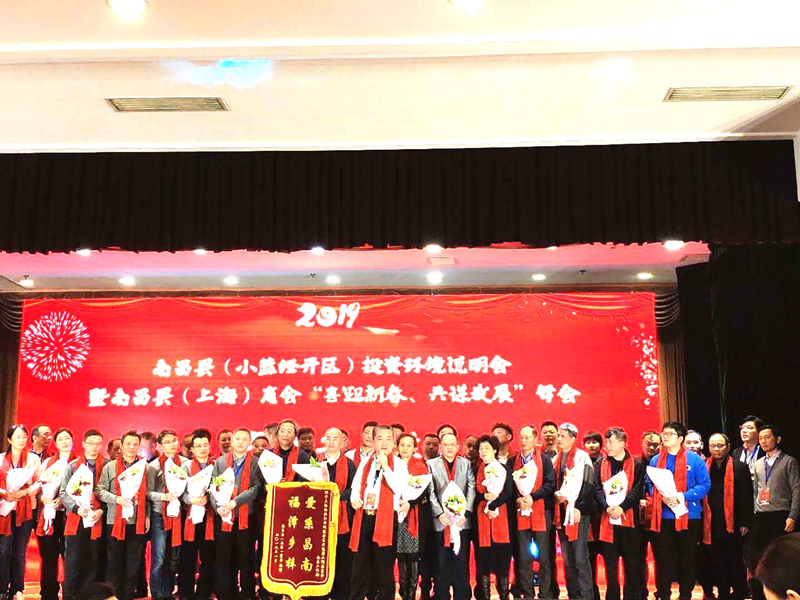 年会和2019南昌县(小蓝经开区)投资环境说明会一同召开。南昌县委常委、统战部长潘凌女士推介小蓝经开区发展情况和投资环境。知青代表、上海市政府原副秘书长柴俊勇发言,南昌市政府驻沪联络处主任许永晟和南昌县委书记、小蓝经开区党工委书记胡晓海先后讲话。