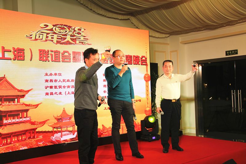 晚会开始了丰盛晚宴,南昌之友执行会长蒋以新致祝酒词,和南昌市政府驻沪联络处许永晟主任、沪赣医促会南昌会卢军华会长一起登台举杯。全场起立,共同为2018年更大发展更美好生活干杯!