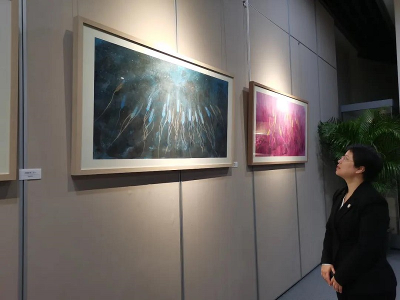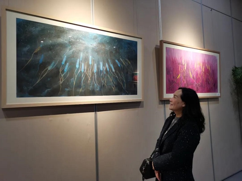 常务副会长、女企分会会长江妙敏说:丁融老师的画展来到青浦博物馆开展,疫情防控期当地政府支持开展,可见对画家的作品认同不一般,特别是冒着风险赶来看画展的友人粉丝更是携情带意,欣赏有嘉,丁融夫人肖苹在过去疫情中的一年里,她与先生砥砺前行,在上海各热点地区办了数个画展,所展之处都得到东道主的鼎力支持并收获当地粉丝满满,这种并肩进步,共同成长的感觉好赞!特别喜欢丁融画家深厚细腻的功笔及独特的创意,画展很吸引我,感觉有一股向上的“宙力”。又一次学习了!