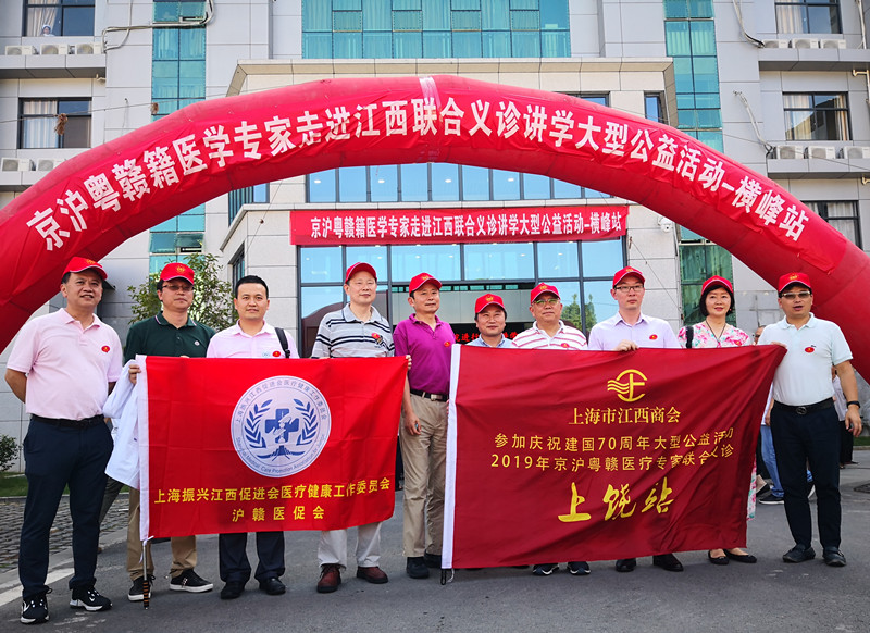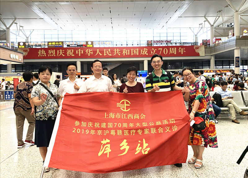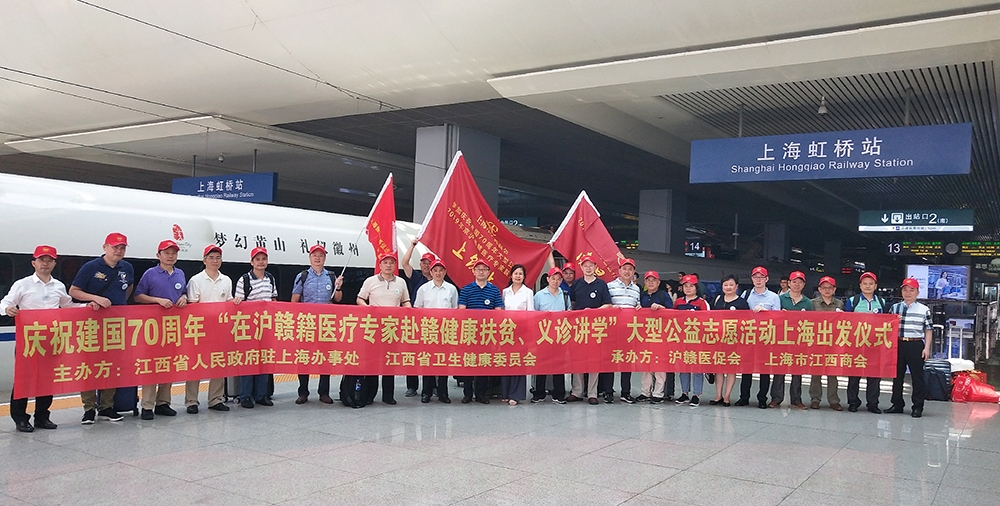 2019年9月14日至15日,京沪粤150多位(赣籍)医疗专家在江西南昌、萍乡、赣州、上饶、吉安五市同时举办“传承红色基因 助力健康扶贫——京沪粤(赣籍)医疗专家走进江西联合义诊讲学大型公益活动”。我会作为承办方之一,为上海50多位专家提供往返交通资费,派出副会长以上领导和企业家随行全方位服务,向新中国70周年盛典献礼。