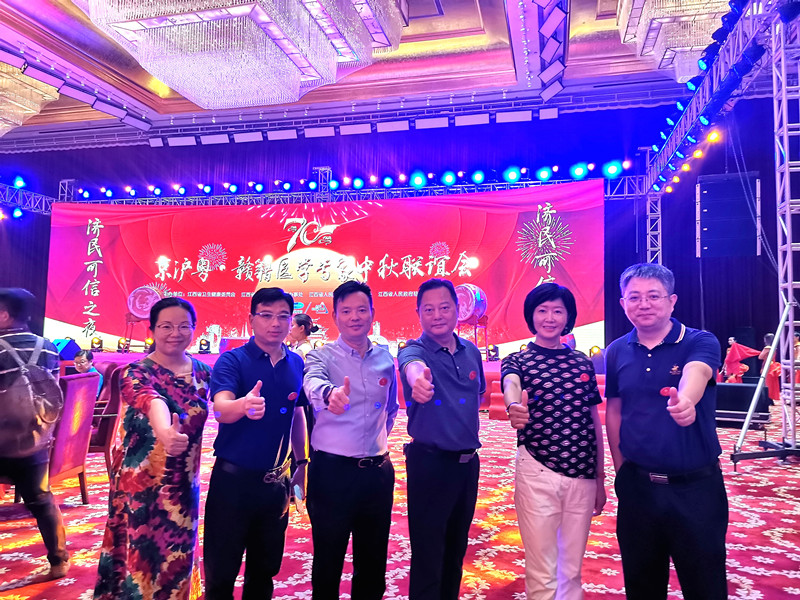 义诊队员抵达南昌后,江西省卫健委在前湖迎宾馆举行优秀乡贤为江西发展建言座谈会和中秋联谊会, 卫健委党组书记、主任丁晓群诚挚感谢京沪粤专家中秋佳节回家乡义诊。11名沪赣医促会专家代表出席。沪赣医促会顾问、上海市肺科医院院长艾开兴,沪赣医促会会长、上海长征医院教授胡志前代表上海专家发言。在中秋联谊会上,沪赣医促会秘书长、上海长海医院教授彭亚军,我会党支部书记、常务副会长蒋以新发言,表示要认真搞好义诊活动,为家乡人民送上一份健康情礼。