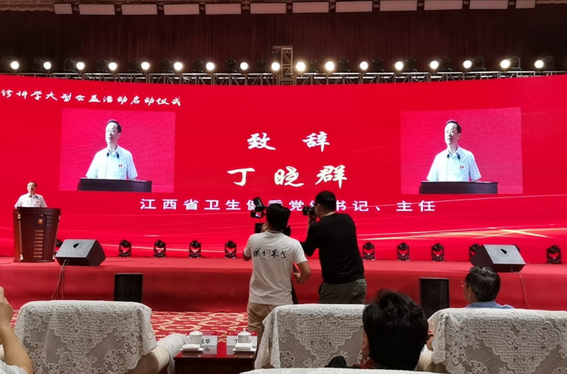 9月13日从虹桥火车站出发时,江西省政府驻沪办党组书记、主任吴井勇发表讲话,他感谢医疗专家和服务人员舍小家顾大家,牺牲中秋节日回家乡为父老乡亲服务。我会领队队员和义诊专家一起参加出征仪式。吴主任将义诊服务队旗授给沪赣医促会会长、上海医疗专家领队胡志前教授。