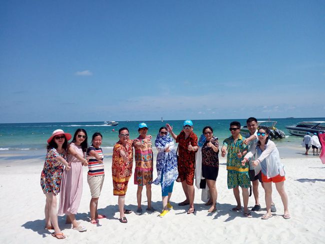 行程安排中的清迈小镇、大象乐园、鄂鱼水塘、热带动物园、水果植物园、沙美岛快艇、海上摩托、空中滑翔、沙滩戏水、泰式古法按摩、东方公主号人妖秀、泰拳观摩比赛等,无一不使团友们嗨笑连连,欢欣开怀。平时商场上的严谨庄重完全放下,拥有的是欢笑,欢笑,还是欢笑。