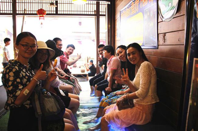 在芭提雅水上部落——杜拉拉水上市场,大家对临水而建的泰式竹木屋有了近距离接触。团友们悠然漫步中品尝各色泰式小吃果饮,信手采购当地手工艺品、果蔬化妆品、本草药物、特色服饰、各买所需,其乐融融。大家对因拍摄电影《杜拉拉升职记》而扬名的市场有了认识,对泰国本土产品、消费水平和人文环境有了进一步了解。