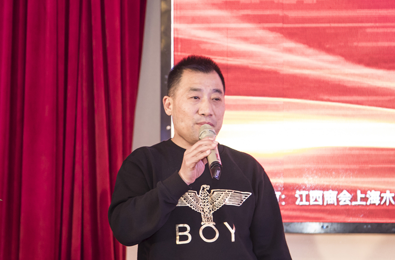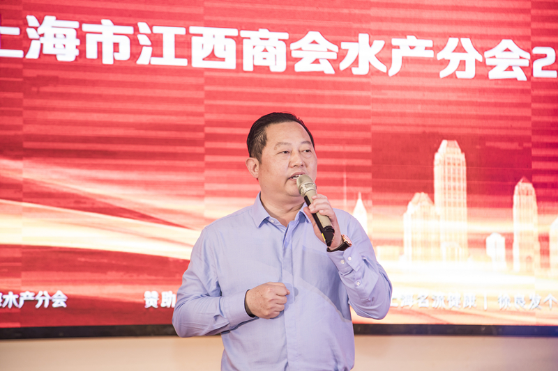 水产分会会长包新水致词。他感谢各位领导嘉宾莅会指导,感谢水产分会会员一年来互相帮助,团结奋斗,取得了显著成绩。2019年即将来临,他希望在新的一年里会员们更加团结互助,共同努力,把江西的特色水产品牌、特别是鄱阳湖大闸蟹和小龙虾推向全国。