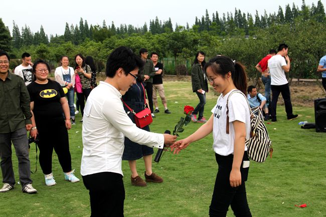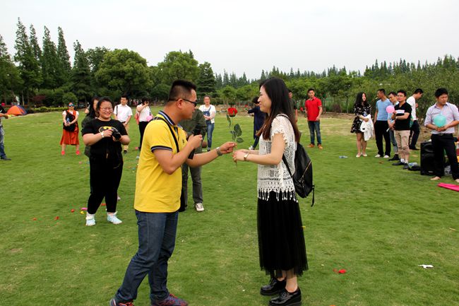 活动最后是爱意表白环节。队友对交往中心仪的异性现场献花,大胆说出爱。有三位男青年举着玫瑰走向意中人,牵手来到草坪中央,表白心迹,获得大家热烈的掌声和欢呼声。多数队员把美好时刻留在以后,和爱友加微信,网上交流,继续了解。