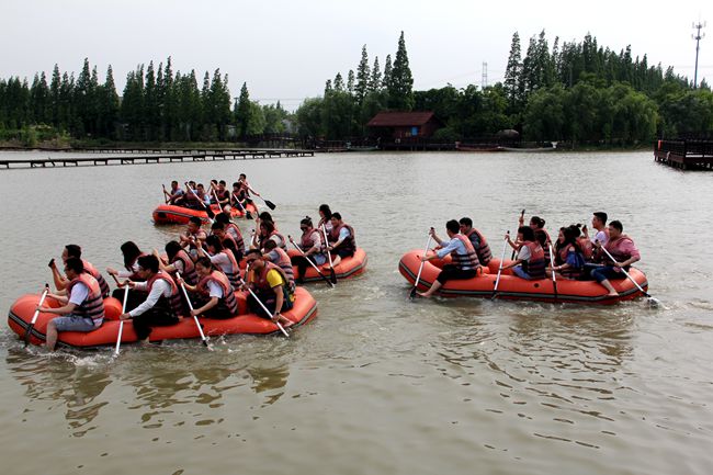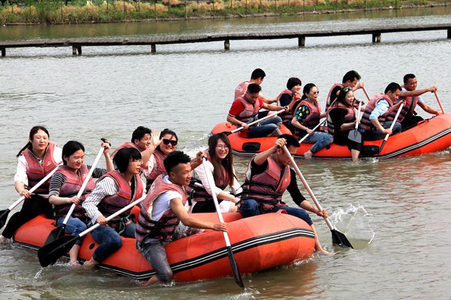 皮划艇比赛是整个活动高潮。七支队伍分坐七艘皮划艇,在生态湖里划桨竞技,谁最快谁获胜。大家齐心协力,摇桨推波,加油冲刺,个个奋勇争先,最后太阳队斩获头筹。