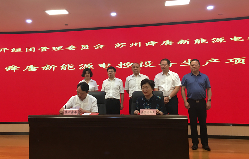 8月2日上午,舜唐新能源电控设备生产项目落户赣江新区签约仪式在经开组团管委会一楼举行,苏州舜唐新能源电控公司董事长方波,副董事长、总经理、我会常务副会长姜久思,财务总监冯敏雁,副监事长、我会常务副会长钟国亮,我会秘书长骆彬,苏州舜唐公司行政秘书王景云等参加签约仪式。