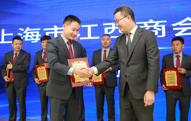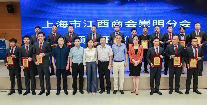 崇明分会为今年8月18日选举产生的班子团队举行颁证仪式。江西省人民政府驻上海办事处党组成员、副主任张雪萍为