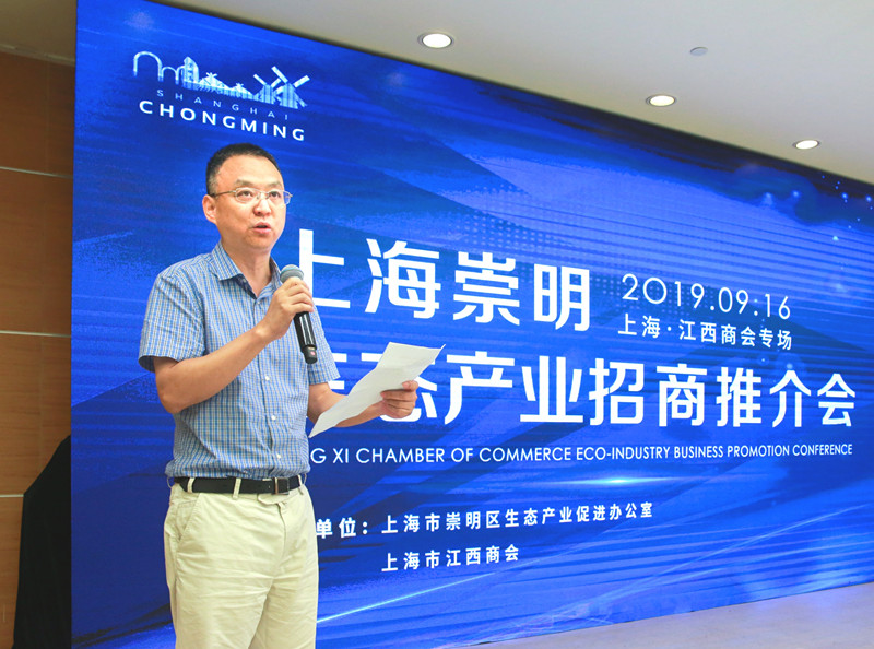 大家观看崇明宣传片后,江西省人民政府驻上海办事处党组成员、副主任张雪萍讲话。她说崇明是生态天堂,江西不少企业家在这里大展宏图。她相信通过这次活动,
