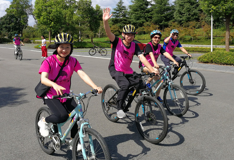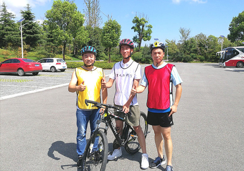 17日进入项目比赛阶段。第一项是自行车骑行竞技。上午 8点大家分二辆大巴前往崇明岛自行车主题公园。在简短的开启仪式后,骑行比赛正式开始。