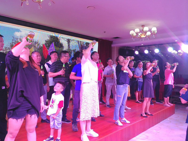 在当晚举行的庆祝晚宴上,远在印尼的程长仁会长发来了遥远的祝福。她以一首《风雨彩虹铿锵玫瑰》歌曲表达对大家的感情和想念。在介绍海外新领域创业感悟后,她祝愿商会企业家结合自身与环境实际,坚持把企业做稳做好,有坚守有拓展,立足国内放眼国际!她祝所有企业家如意、幸福、安康!请大家一起喝杯酒,祝福即将到来的中华人民共和国成立七十周年!愿家国共繁荣!