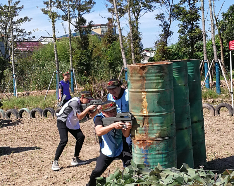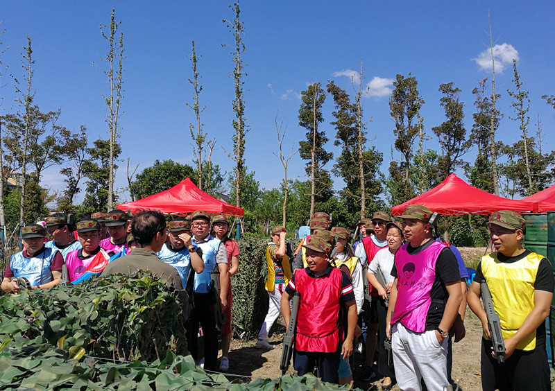 第三天全体人员乘大巴约前往花园村–真人CS场地,进行国防体育大赛。