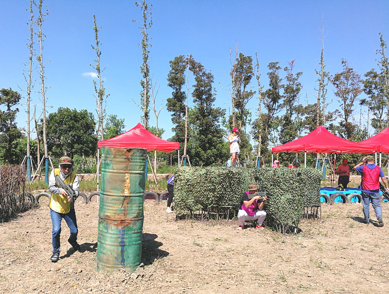 虽是电子竞技枪弹,但仿真度高,为“中国野战运动冠军赛”竞赛指定装备。掩体迂回曲折,是战场的精巧浓缩。大家斗志昂扬,体验了战争感觉,经过艰苦战斗,南区北区联合队获第一名,东区获第二名。