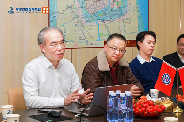 执行会长王三矛对杜桂华会长等一行的到来表示热烈欢迎。他详细介绍了摩尔口腔医院集团的历史发展及远景规划等。他表示,上海摩尔松江口腔医院、上海摩尔浦东口腔医院是摩尔口腔医院集团重点打造的口腔专科医院。临床科室齐全,可以高质量开展口腔常规疾病和疑难疾病的诊疗。目前,摩尔口腔医院集团在沪已有六家医院均获得医保定点单位,分别坐落于普陀区、浦东新区、宝山区、闵行区、松江区、奉贤区。摩尔口腔医院集团是上海市首批医保定点社会办医连锁专科医院,已有10家口腔专科医院纳入社会医疗保险定点医疗机构后,一方面丰富了社会医疗资源,另一方面也让患者有了更多的选择,将更大范围地满足人民群众的就医需求,给越来越多的患者带来方便。
