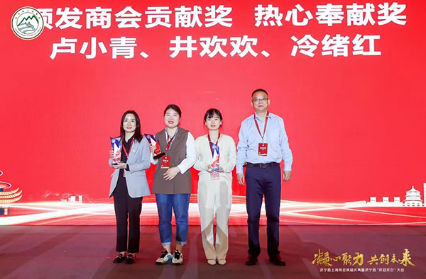 会长杜桂华,为卢小青、井欢欢、冷绪红颁发热心奉献奖。