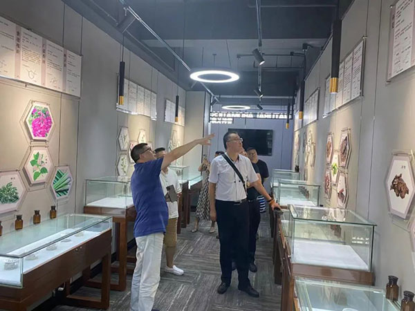 副会长、上海中香实业有限公司董事长、中香天然香料产业促进中心副主任万剑吟热情接待了罗国庆执行会长一行,陪同商会企业家参观公司展厅的香料长廊,详细介绍了天然香料的原产地、功能、下游应用及专家墙等,并向大家展示了部分中香旗下产品。