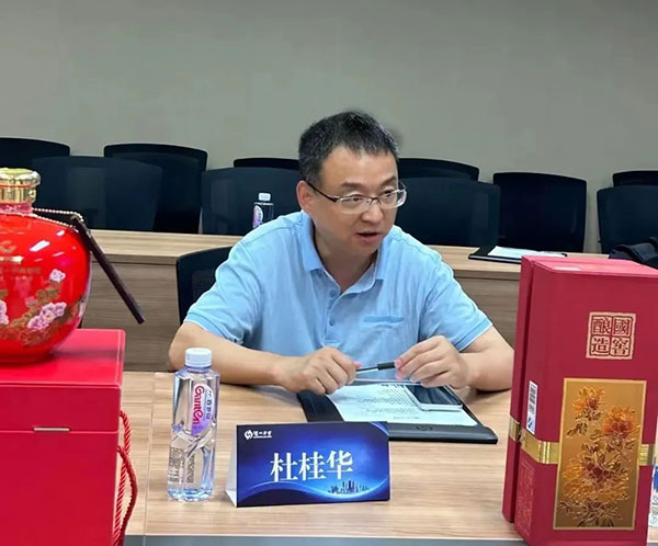 杜桂华会长致辞,感谢曾程副会长、感谢泸州老窖国窖1573的邀约。他表示,以酒会友,进行一次深入的企业拜访与交流,架起一座新桥梁,加强双方的合作关系,探讨未来联动的多样性。泸州老窖,作为中国白酒的代表之一,具有着悠久的历史和深厚的文化底蕴,希望能够与泸州老窖国窖1573的领导和团队深入交流,了解彼此的经营理念和发展策略。同时,我也想分享 建设与拓展等方面的经验和成果。我们可以从双方的优势出发,寻找合作的契机,共同推动中国白酒产业的发展,实现互利共赢,开创更加美好的未来。