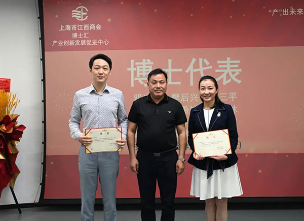 江西省人民政府二级巡视员吕宏光,江西省政协委员、 会长杜桂华为 博士汇揭牌。江西省人民政府驻上海办事处经济协作处处长陈红英、 监事长、博士汇、产促中心主任蔡晓丰博士为产业创新发展促进中心成立揭牌。