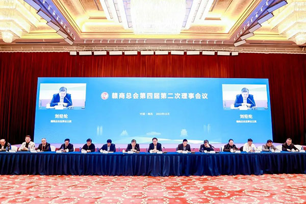 2023年12月26日下午,赣商总会第四届第二次理事会议在南昌隆重召开。江西省商务厅二级巡视员邓海平出席。赣商总会第四届理事会、监事会全体代表,赣商总会专委会代表,各地江西商会秘书长等近300人参加会议。江西省政协委员、 会长杜桂华,骆彬书记,副会长余军飞,副监事长范凡,秘书长刘少敏参加了此次会议。