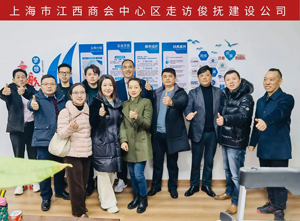 2024年2月22日, 中心区区长、常务副会长、科技金融分会会长邹童,常务副会长王君,副会长陈清平、聂琴,副监事长杨凯峰,中心区联络员、理事徐小华,理事向耍贵、鹿海霞、黄瑞泉、周福孙、刘兰芳,赴上海市松江区茸梅路345弄3号楼308室走访理事单位上海俊抚水务公司总经理章欢平。