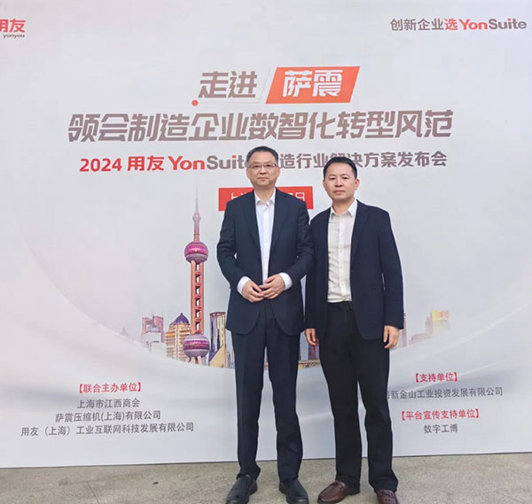 2024年5月7日,由 、萨震压缩机(上海)有限公司(简称:萨震)、用友上海区域运营机构(简称:用友上海)联合主办,上海金山湾区、数字工博支持的“走进萨震——领会制造企业数智化转型风范暨2024用友YonSuite制造行业解决方案发布会”在萨震压缩机(上海)有限公司成功举办。