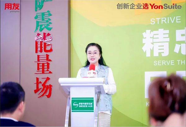 用友网络高级副总裁兼企业BG总裁徐洋在致辞中表示,萨震是一家非常值得深入学习和交流的企业,能够在激烈的行业竞争中脱颖而出,源于其“顺势而为”的战略眼光、坚持“稳健增长”的发展策略及其完善全面的管理体系。萨震公司始终紧跟国家政策、经济大势和行业机遇,注重内部管理和产品质量的提升,坚持在节能空压机领域深耕细作,始终秉持着“以客户为中心”的理念,实现“价值替代”。