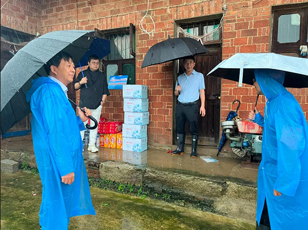 到达抗洪一线后,刘会长一行与坚守在此的基层干部及志愿者们进行了亲切地交流。商会领导代表全体成员向他们表达了最诚挚的感谢与敬意,感谢他们在危难时刻挺身而出,守护着家园的安宁与人民的安全。同时,也详细询问了他们的生活与工作情况,表达了商会将持续关注并支持抗洪工作的决心。