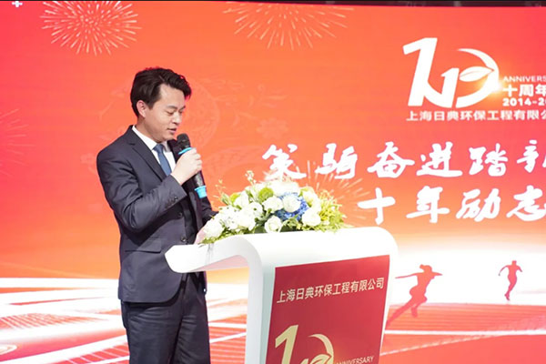 上海日典环保工程有限公司创始人兼总经理徐小华发表了感人至深的致辞。他回顾了自己从江西红土地到魔都上海打拼的艰辛历程,多次创业失败却不忘初心。他感谢十年来一直关心、支持日典环保成长的各级领导、各界朋友、合作伙伴和全体员工。他说,十年的风雨兼程,有太多感动值得铭记。正是因为大家的关心和陪伴,日典环保才能迎来今天的成就。