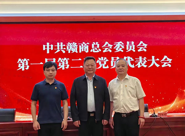 2025年4月12日上午,中共赣商总会委员会在赣州市于都县召开党员代表大会,选举产生了新一届党委委员。省委社会工作部副部长孙鑫,省商务厅党组成员、副厅长王春雷出席并讲话。省商务厅二级巡视员杨铮主持会议。赣商总会副会长、 党支部书记骆彬,赣商总会副会长、 常务副会长王振兴,赣商总会副秘书长、 秘书长刘少敏等出席了此次会议。