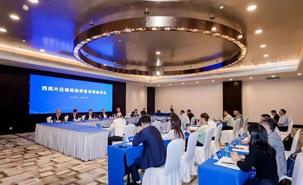 10月17日下午,西南片区赣商高质量发展座谈会在贵阳市召开。省商务厅党组书记、厅长犹,全国人大代表、赣商总会会长熊建明出席会议并讲话。省商务厅二级巡视员,赣商总会党委书记、执行会长杨铮主持。这次会议是继西北片区赣商高质量发展座谈会成功举办后,赣商总会为推动区域赣商协同发展、促进交流合作的又一次重要会议。
